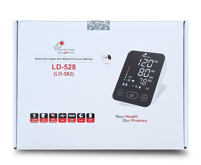 دستگاه تست فشار خون زنیت مد مدل LD-528، یک فشارسنج دیجیتال بازویی تمام اتوماتیک و سخنگو است که با فناوری پیشرفته نوسانی، اندازهگیری دقیق فشار سیستولیک، دیاستولیک و ضربان قلب را در عرض چند ثانیه انجام میدهد. این مدل مجهز به دو کاف قابل تنظیم (یکی استاندارد 22-32 سانتیمتر و دیگری برای بازوهای بزرگتر 32-42 سانتیمتر) است که راحتی و دقت را برای کاربران مختلف تضمین میکند. ویژگی سخنگوی فارسی، نتایج را به صورت صوتی اعلام میکند و با نشانگرهای رنگی WHO (سبز برای نرمال، زرد برای هشدار و قرمز برای خطر)، وضعیت سلامت قلب و عروق را به سادگی نمایش میدهد.